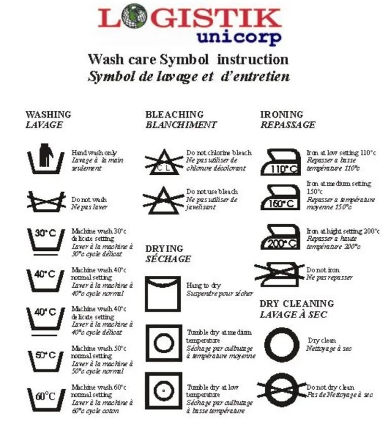 Washing Information: (found on the tag of all uniform parts)