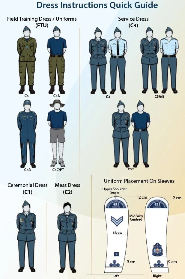 For full details on how to wear each item of your uniform, refer to the official CJCR Dress Instructions. Your senior cadets and officers can help you interpret these standards.